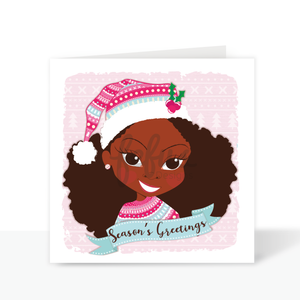 What better way to send your love than with this super cute & colourful Christmas card. The inside is decorated with subtle pattern and reads ‘Season Greetings’. This is perfect for a little one who wants to see someone who looks just like them!