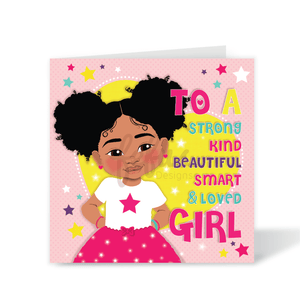 Blasian Birthday Girl Card - Celebrating Diversity and Love. Our Blasian birthday girl card is a vibrant celebration of mixed heritage, designed to uplift and inspire. Featuring adorable characters that reflect the beauty of blended Black and Asian families, this card is more than just a greeting; it's a powerful affirmation of diversity, inclusivity, and self-esteem. Make every birthday extra special with this heartwarming and empowering message.