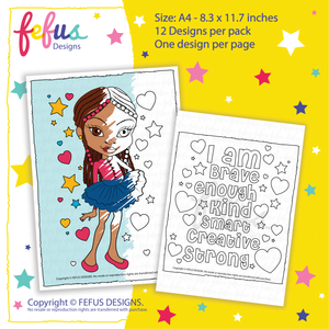 Empowering Older Girls' Colouring Pages – Pack of 12 | Fefus Designs