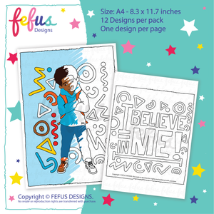 Give your little queen a creative and uplifting experience with our Empowering Boys' Colouring Pages! This pack of 12 hand-drawn and digitally illustrated designs showcases diverse characters and inspiring affirmations, encouraging self-esteem, creativity, and a positive self-image.