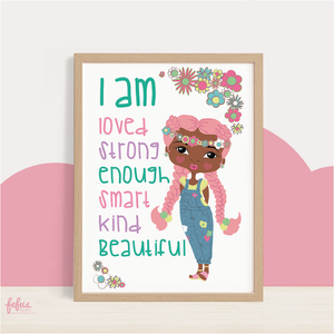 super cute & colourful I AM Affirmation wall art pieces. This is the perfect accessory to decorate a little lady's room!