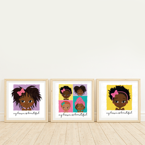 3-Pack Girls' Wall Art – "My Brown is Beautiful" by Fefus Designs