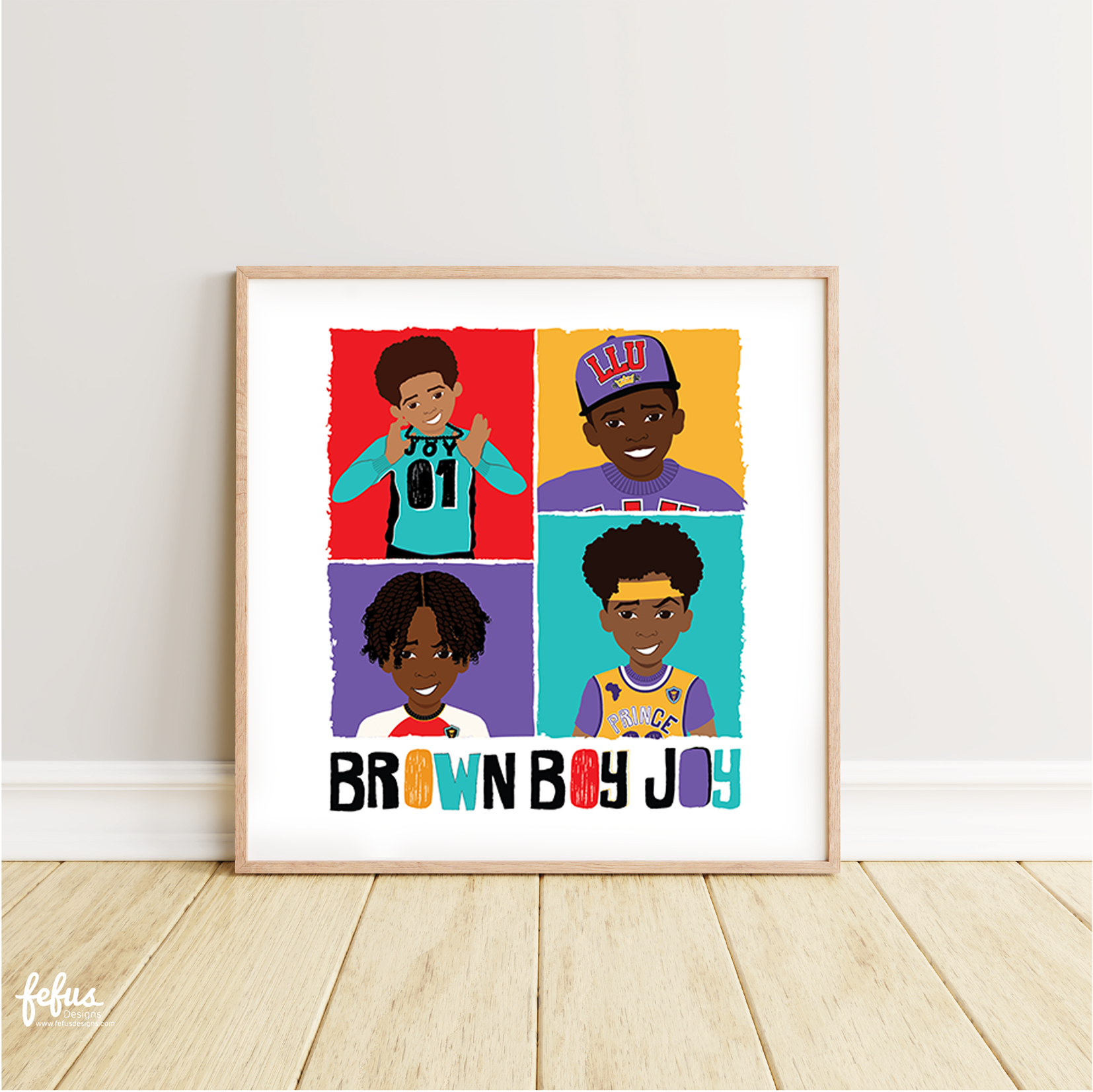 Explore our Boys' Art Prints collection, featuring vibrant and empowering designs like "Black Boy Joy" to instil pride and self-confidence in young boys. Hand-drawn and digitally illustrated by Fefus Designs, these prints celebrate African American and Black British culture. Available in A3, A4, and A5 sizes, they make the perfect accessory for any little king's bedroom. All prints are made in the UK and come with copyright protection.