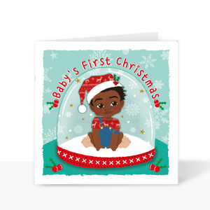Snow Globe - Black Baby Boy's First Christmas Card | Fefus designs