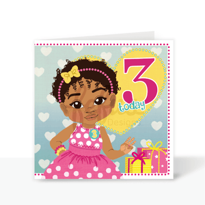 What better way to celebrate a her 3rd birthday than with this super cute & colourful Afro Girl birthday card. Our cards are the perfect addition to a gift or just sent alone, for a little one who wants to see someone who looks just like themselves!