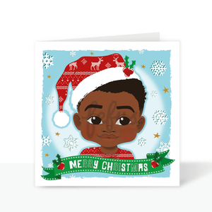 Toddler Black Boy Joy Christmas Card  | Fefus designs