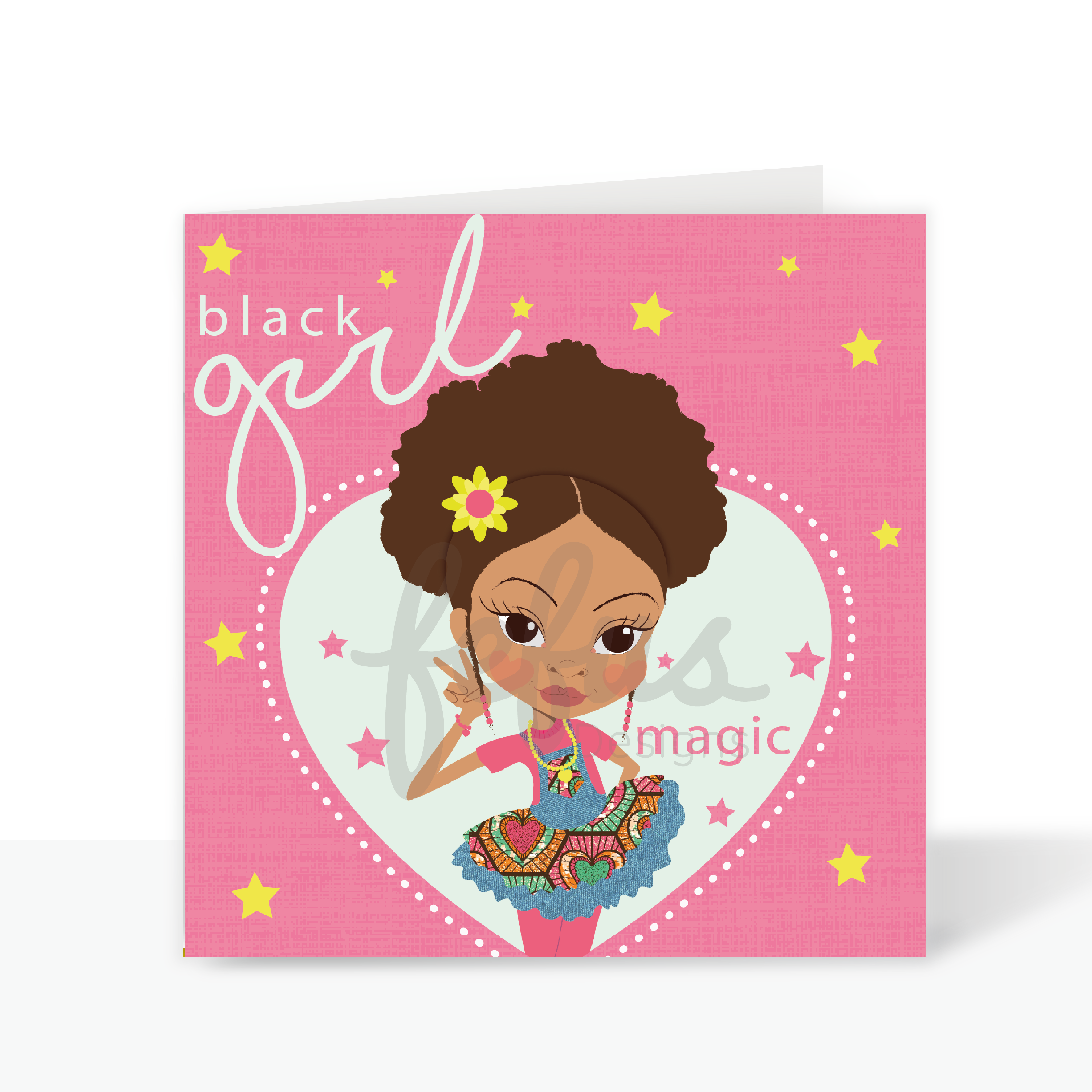 Yasmin - Afronista pink - Mixed Race Greetings Card | Fefus designs
