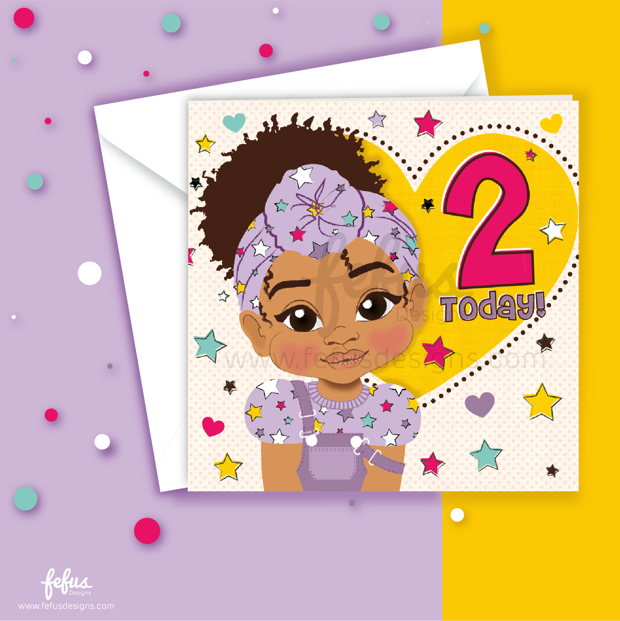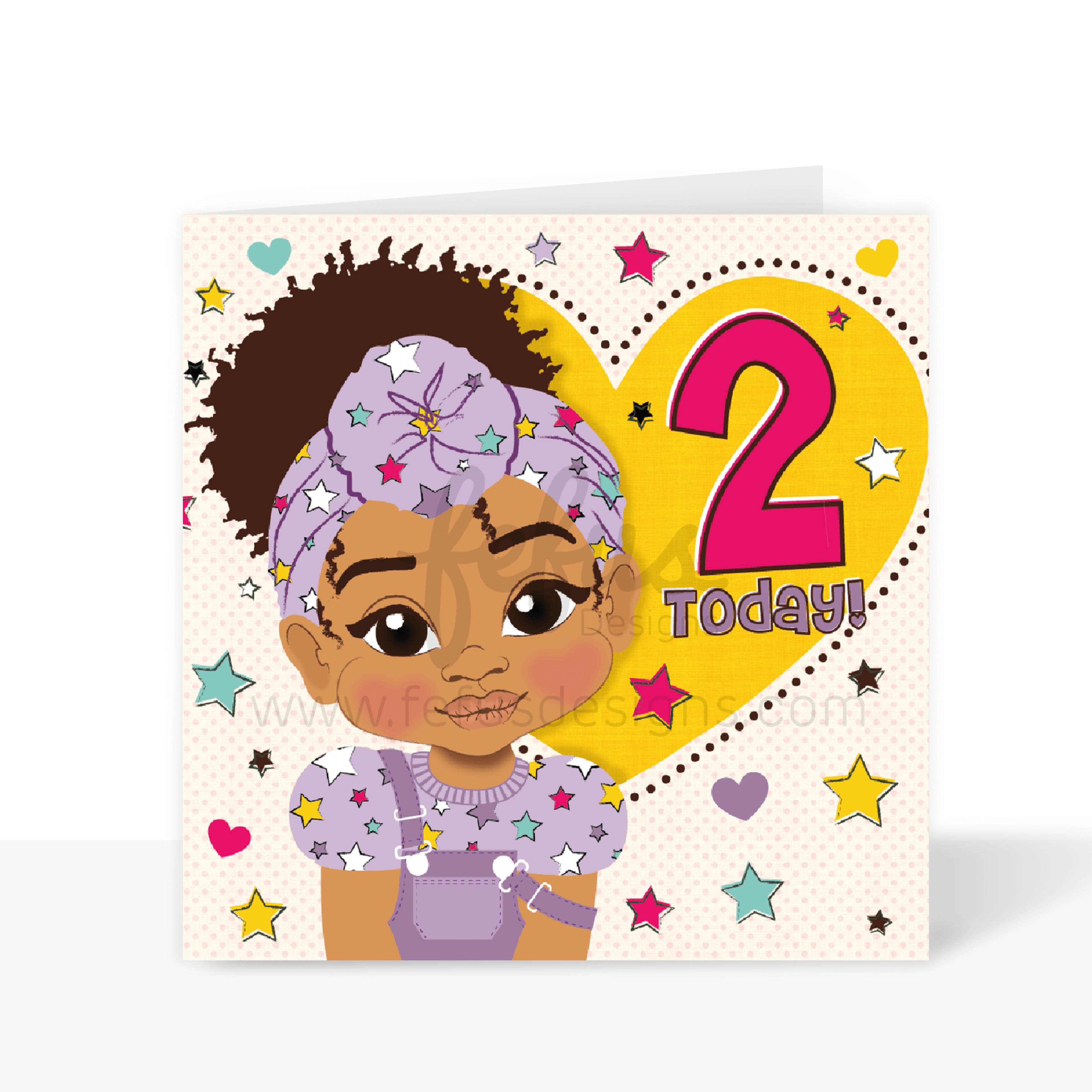 Second Birthday Afro Puff Black Girl - Black Girl Birthday Card | Fefus Designs