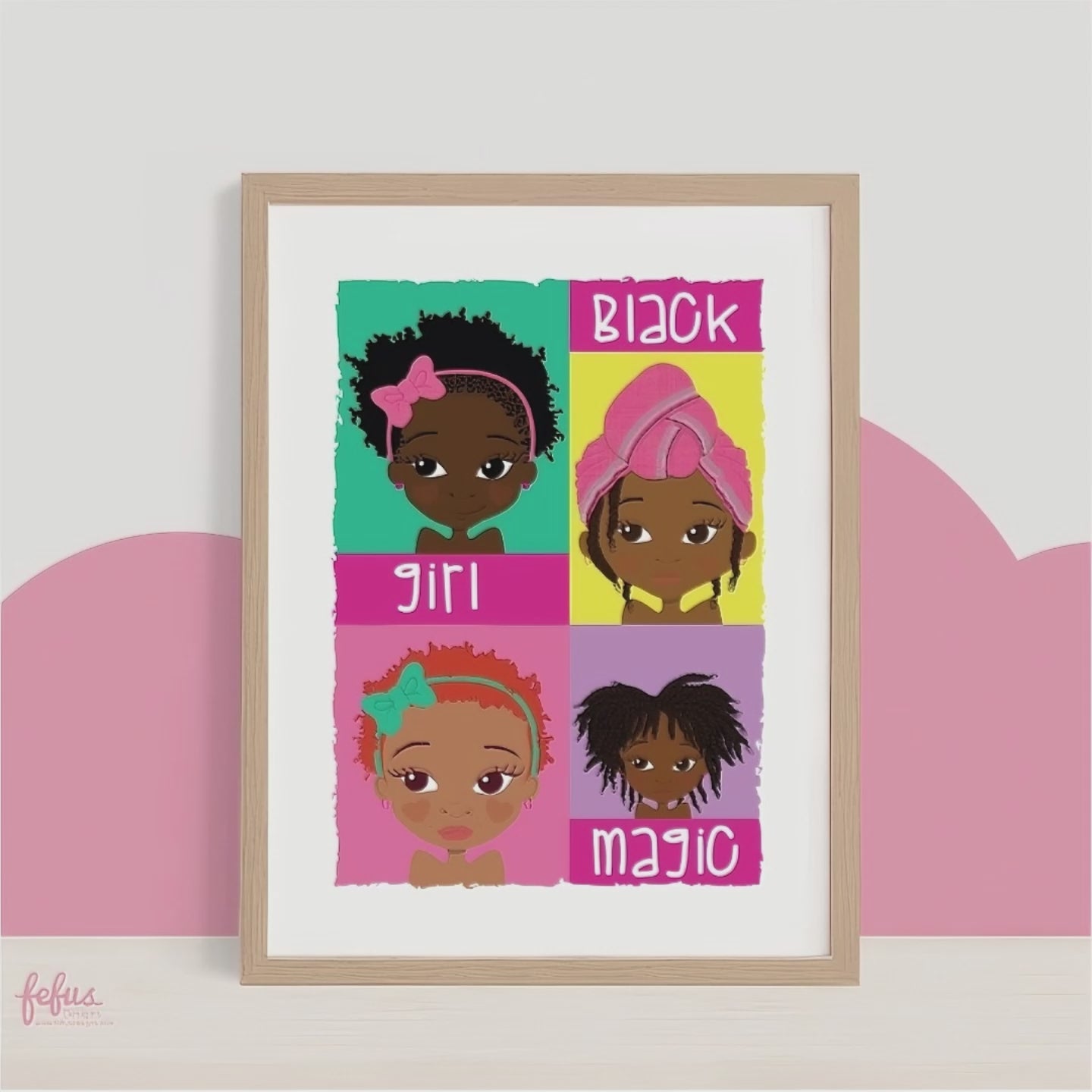super cute & colourful Black Girl Magic wall art pieces. This is the perfect accessory to decorate a little lady's room!
