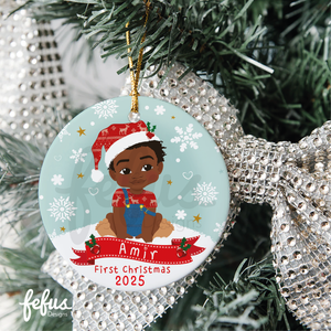 Personalised Black Baby Boys 1st Christmas Bauble | Fefus Designs