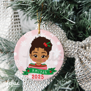 Personalised Brown Girl Christmas Bauble | Fefus Designs